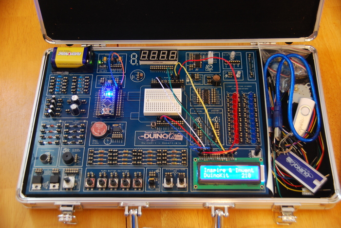 Designed by math teacher Dan Alich, the Atmel-basedDuinoKit Essential Project (DEP) is a cost effective development system for aiding the learning of electronics and programming.