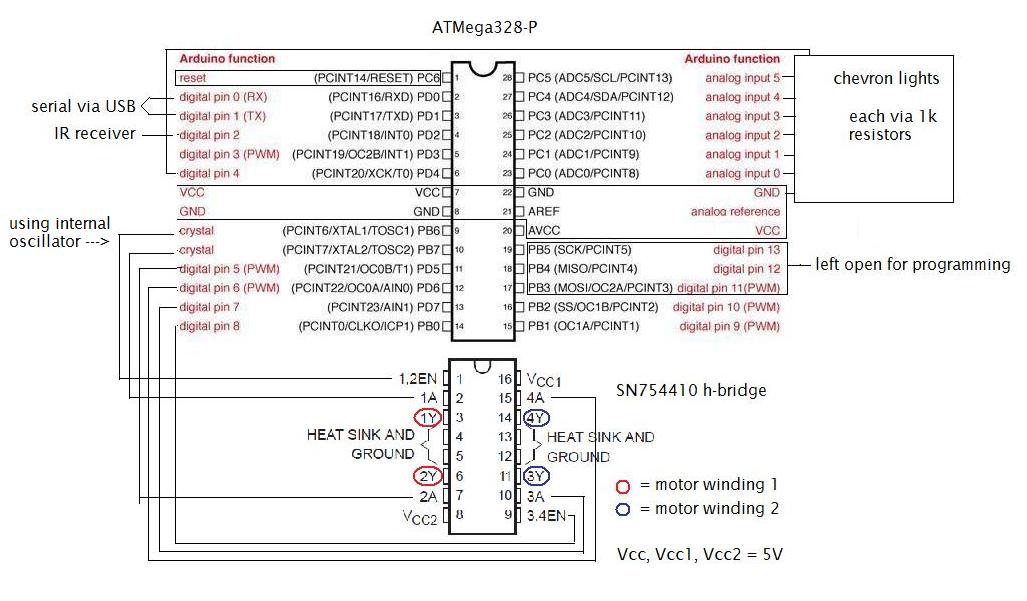 “The hardware uses an [Atmel-based] Arduino Mega (ATmega2560) to take input via USB or Bluetooth and drives the quartet of servo motors accordingly.”