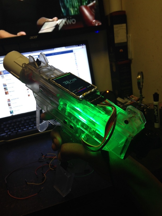 Skirmos is an open source, versatile laser tag system that features an ATmega328P microcontroller (MCU), Arduino bootloader, color LCD screen (acts as a realtime HUD) and an infrared LED.